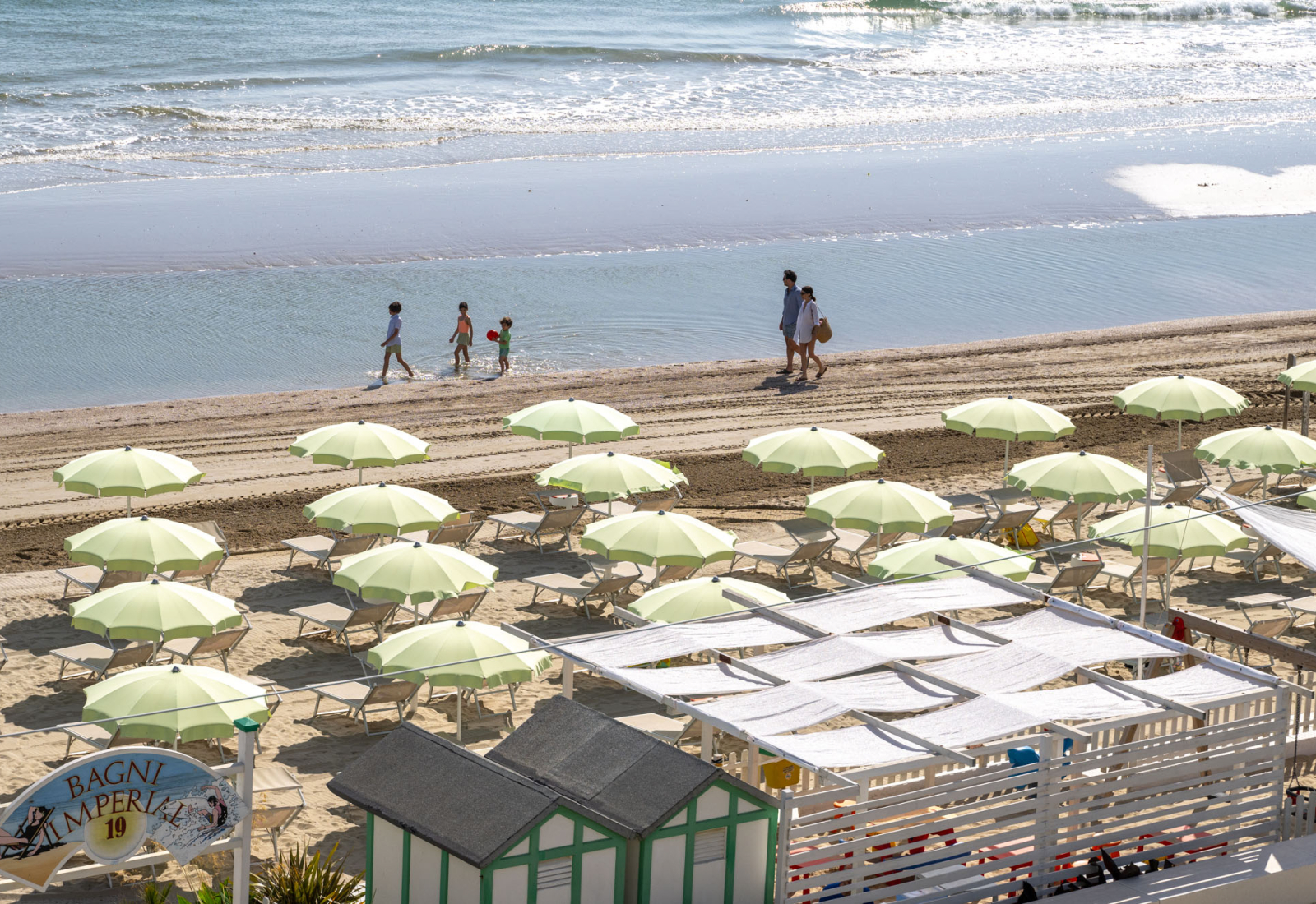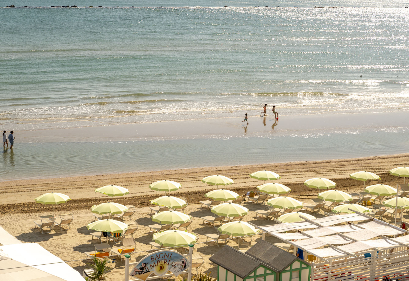 I Bagni Imperial sono qui di fronte, al di là del lungomare a traffico limitato. È sabbiosa e raccolta, con solo 4 file di ombrelloni, bar, area relax e zona giochi ombreggiate.