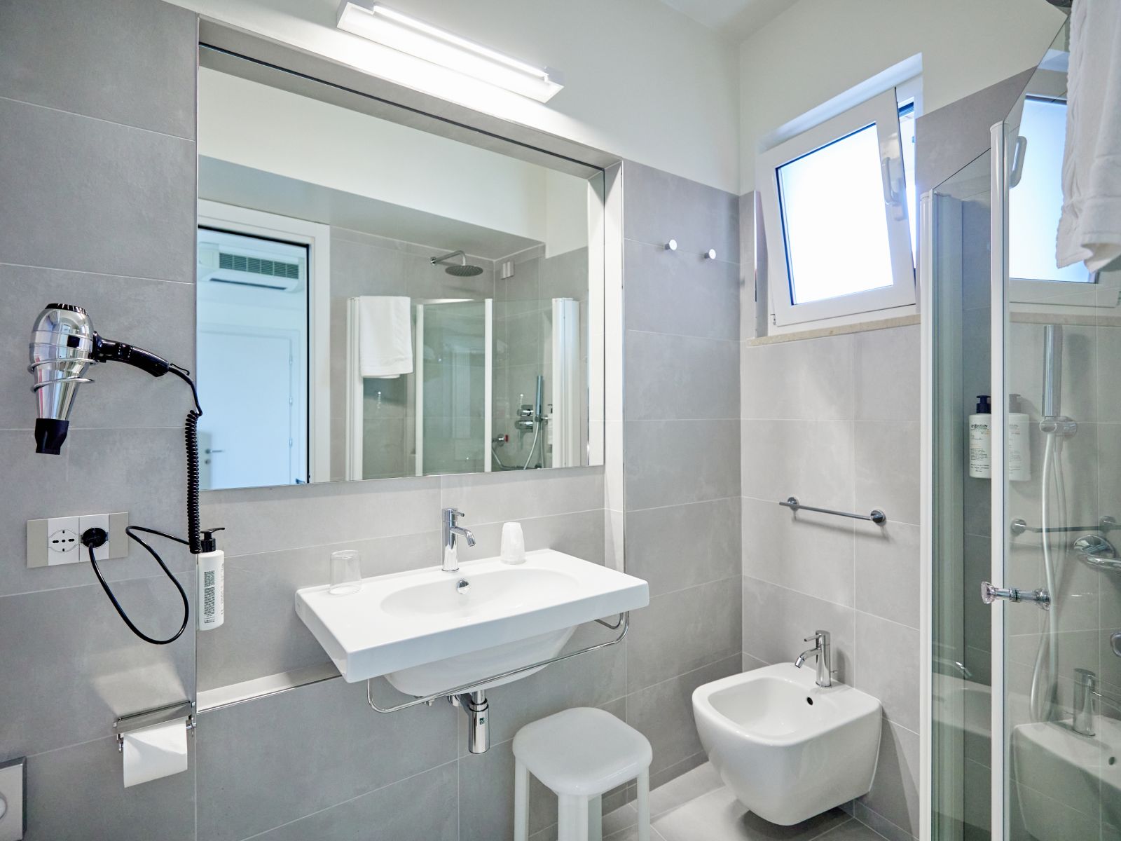 A comfortable, bright and modern room with a side facade balcony