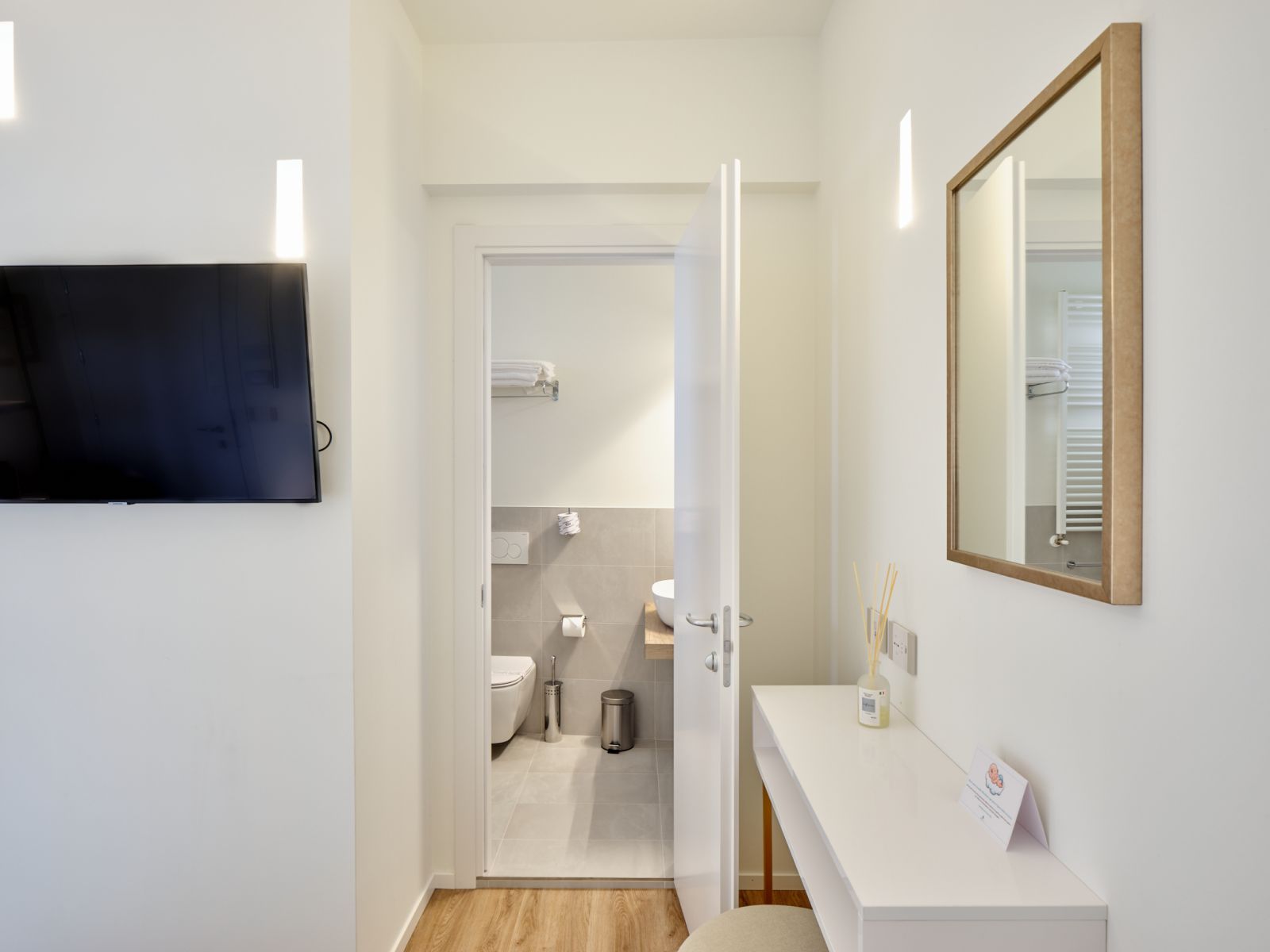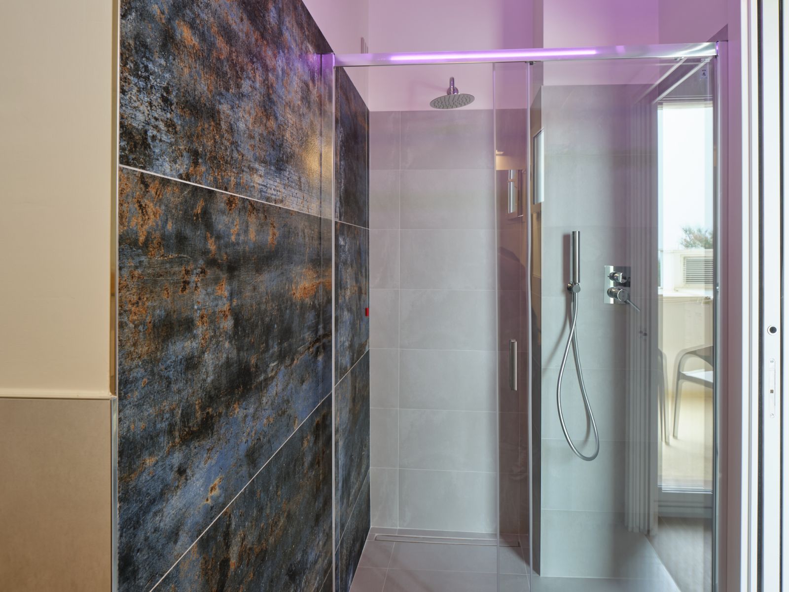 A spacious and barrier free room, with a large terrace overlooking the sea from the side façade on the top floor